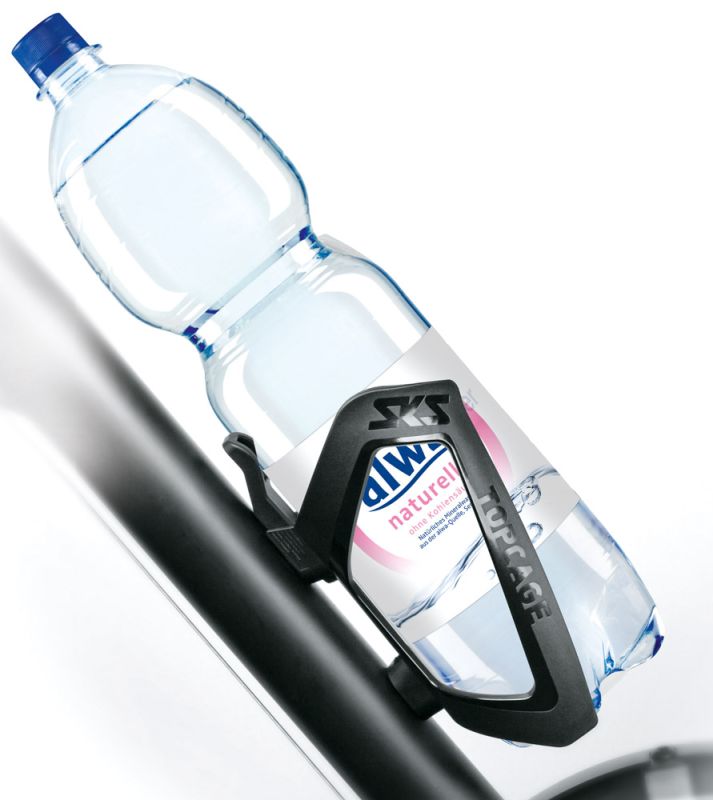 Durch die abgerundeten Kanten lässt sich die Trinkflasche leicht einstecken und entnehmen. Der überarbeitete Fanghaken sorgt für eine sichere Arretierung verschiedenster Flaschenformen, denn dank des flexiblen Materials ist der Trinkflaschenhalter auch für handelsübliche 1,5 Liter PET-Flaschen geeignet.