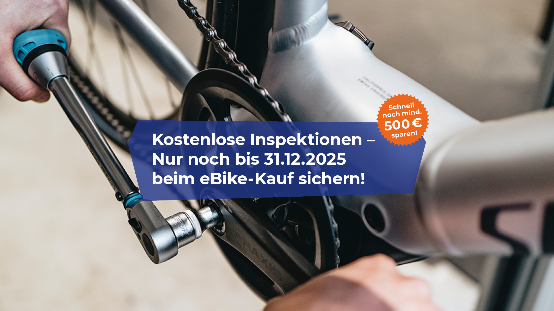 Alle eBikes, die bis einschließlich 31.12.2025 bei uns gekauft wurden, behalten selbstverständlich die bisherigen Inspektionsvorteile.