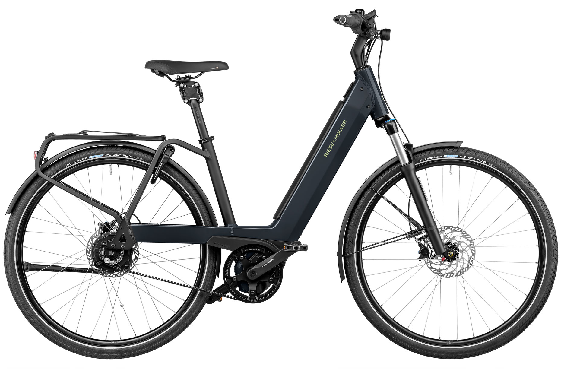 Der serienmäßige Gepäckträger mit MIK-System ermöglicht die schnelle und sichere Anbringung von Körben und Taschen. Zusätzliches Gepäck transportieren Sie mit dem rahmenfesten Frontgepäckträger (mit oder ohne Tasche) ebenfalls sicher ans Ziel. Und wenn Sie häufig abseits asphaltierter Straßen unterwegs sind, können Sie die GX-Option mit All-Terrain-Reifen und breiten Flat-Pedalen wählen. Wer stattdessen ein E-Bike für höhere Belastungen bis zu 160 kg benötigt, ist mit dem optionalen Heavy Duty Package bestens bedient.