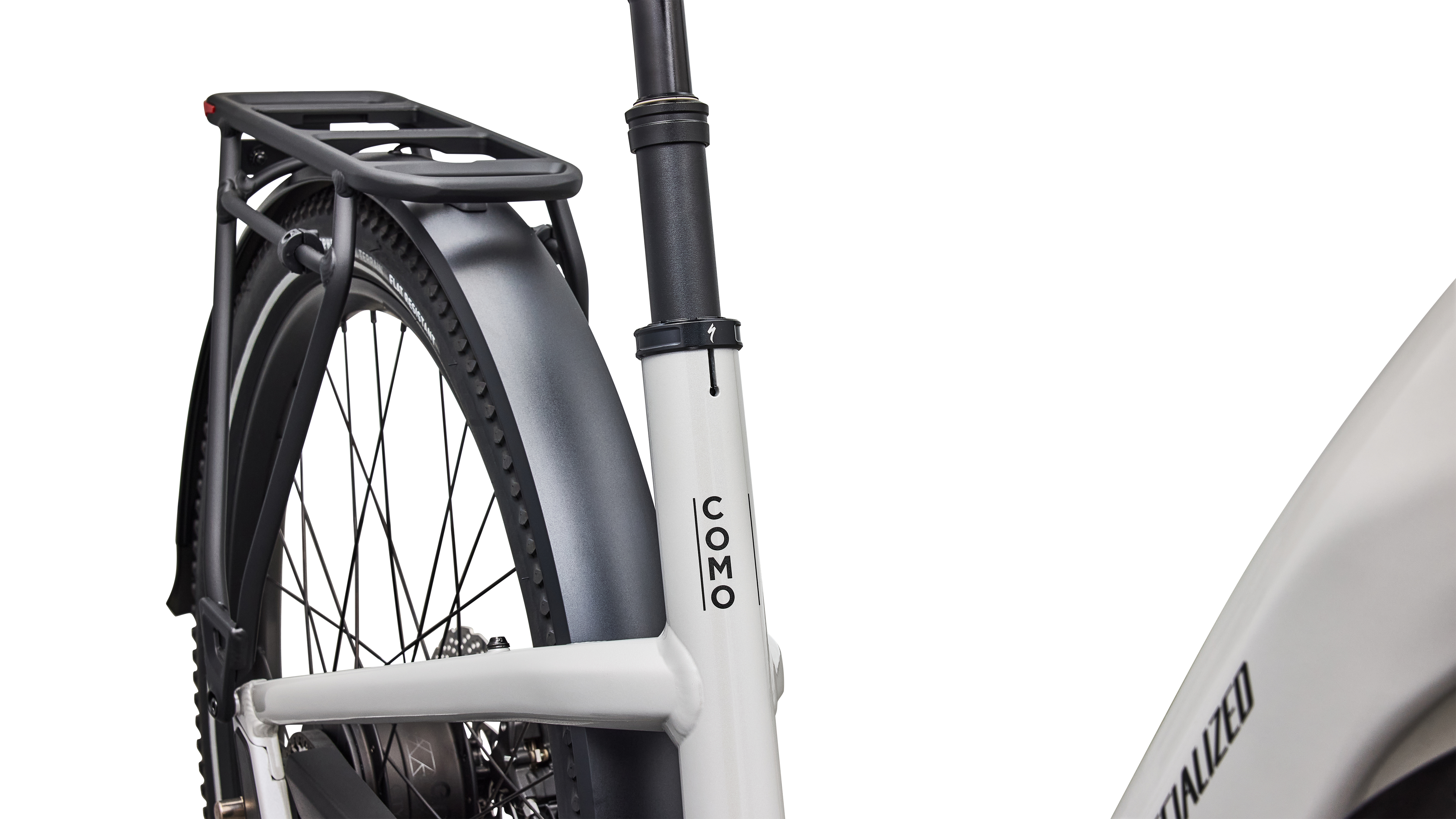 Ausgestattet mit DRYTECH-Schutzblechen, LED-Front- und Rücklichtern und einem HD-Gepäckträger mit 27 kg Tragkraft. Der Gepäckträger ist mit Kindersitzen kompatibel und das Fahrrad ist auch für das Ziehen eines Steckachsenanhängers ausgelegt.
