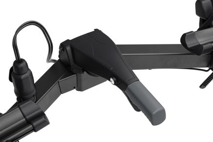 Das Fahrradarmsystem verfügt über unabhängige Arme mit drehbarem Kopf und Riemenbefestigung, die eine sichere Passform für eine Vielzahl von Rahmengrößen und Geometrien, einschließlich Carbonrahmen, gewährleisten.