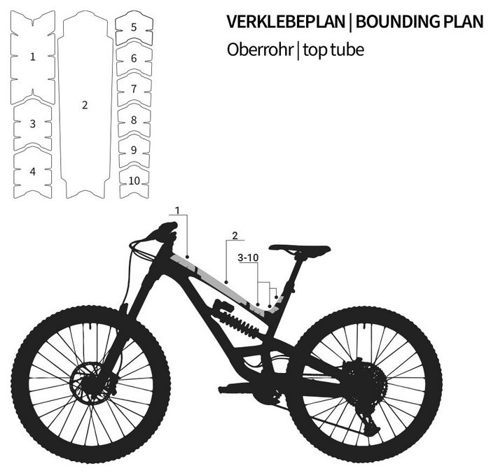 - Die Rahmenschutzfolie S beinhaltet Fahrrad Folie für dein Oberrohr und besteht aus 10 Einzelteilen!