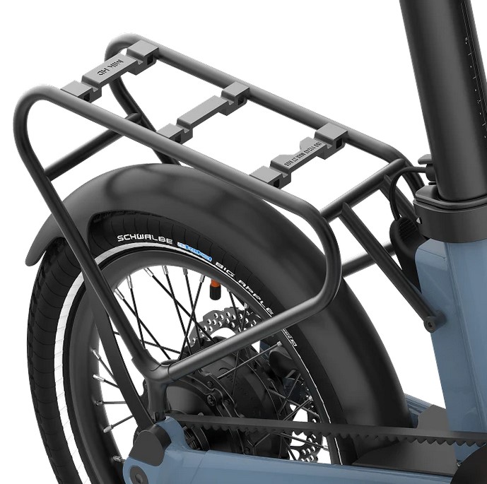 Aluminium-Gepäckträger, kompatibel mit dem PRO16. Ausgestattet mit einem MIK-HD-System, ermöglicht er das Befestigen von Taschen, Körben oder Kindersitzen mit nur einem Klick. Einmal montiert, beeinträchtigt der Gepäckträger in keiner Weise das Zusammenklappen Ihres Fahrrads.