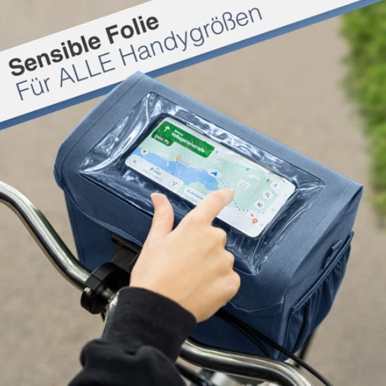Die Front Pack hat ein verstärktes Gehäuse und ist überall über Schweißnähte versiegelt. Der Zugang geht blitzschnell über ein Magnetverschluss. Das Handyfach ist für Handys jeder Größe geeignet.